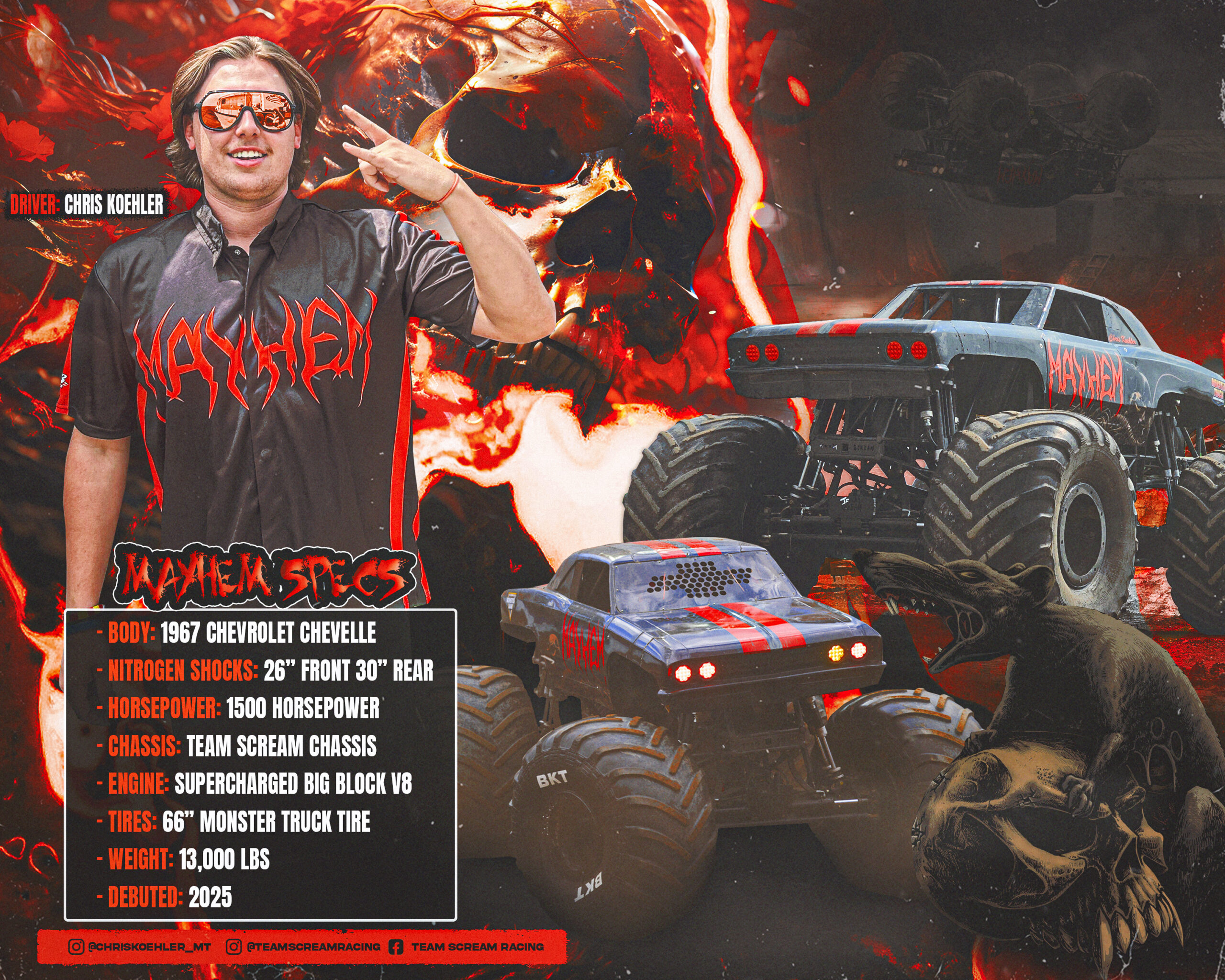 The official website of Team Scream Racing - Avenger, Brutus, Rage, Wrecking Crew, Spike, Mega Bite and Axe Monster Trucks