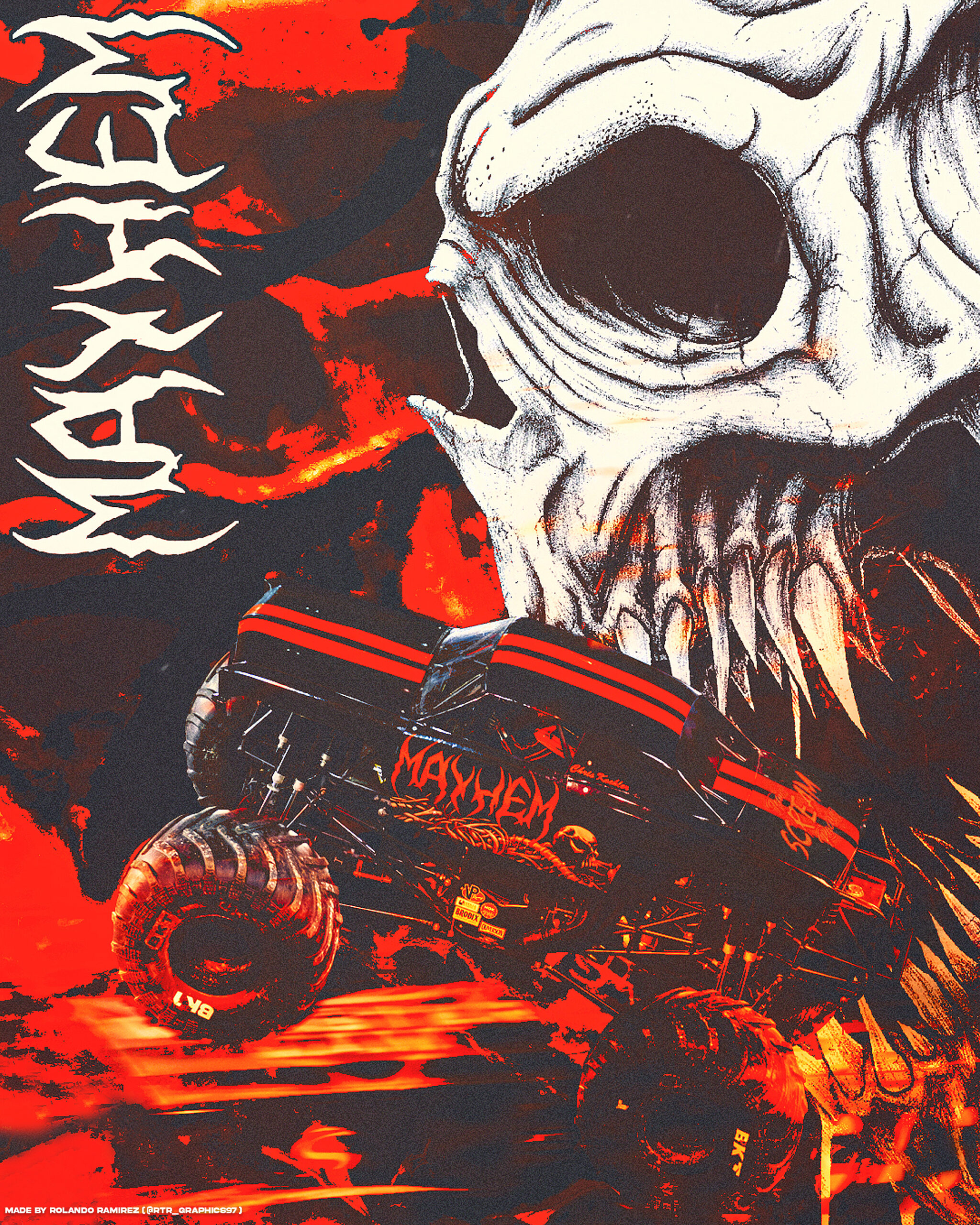 MAYHEM official card has artwork on the cover and driver, infos and couple pictures of the truck on the back.